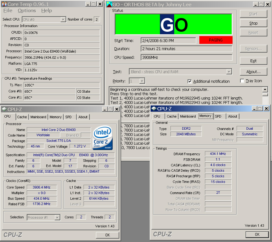 Core2 Duo e8400 oc'd to 3.9Ghz